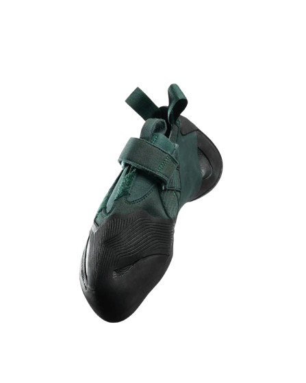 Системата за закопчаване включва две велкро ленти, които осигуряват сигурно и персонализирано прилягане. Твърдата междинна подметка подобрява стабилността при стъпване на ръбове, а специално разработената гума предлага отлично сцепление и триене на различни скални повърхности.