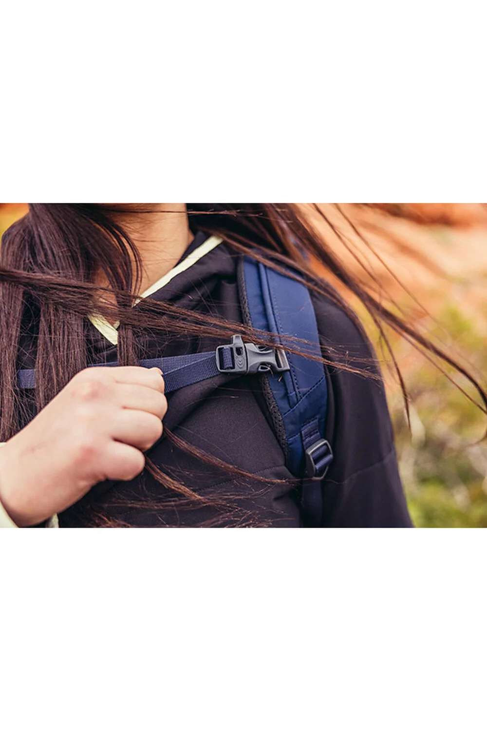 Перфорирани, дишащи презрамки с гръден ремък и вградена сигнална свирка