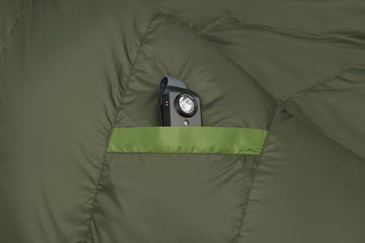 Безхимичната технология ExpeDry™ трайно подпомага бързото изсъхване на пуха и запазването на обема му, когато потта, влагата и кондензът се опитват да развалят настроението – и топлината на чувала. Пълнодългият цип против закачане и допълнителният страничен цип осигуряват прецизен контрол на комфорта и покриване като одеяло при променящи се условия, различни позиции за сън и дори игри на карти в палатката.