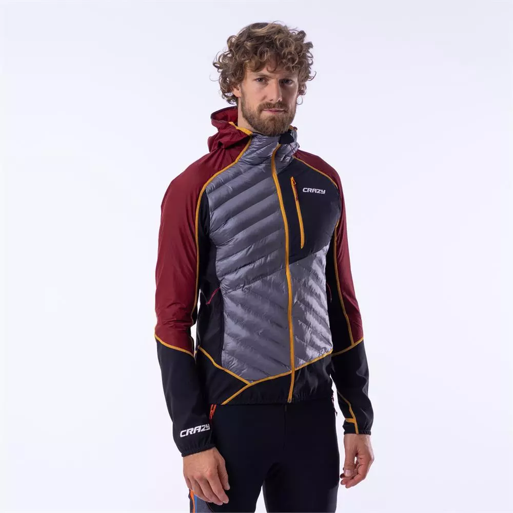 CRAZY JACKET CHANNEL INSULATION е мъжко hибридно яке, конструирано така, че да предлага оптимален баланс на терморегулация, защита и комфорт при outdoor активности и планински условия, включително ски алпинизъм и преходи в студено време. Якето съчетава различни специализирани материи в зоните на тялото, за да предложи запазване на топлината отпред, дихателност отзад, както и леко тегло и свобода на движение.