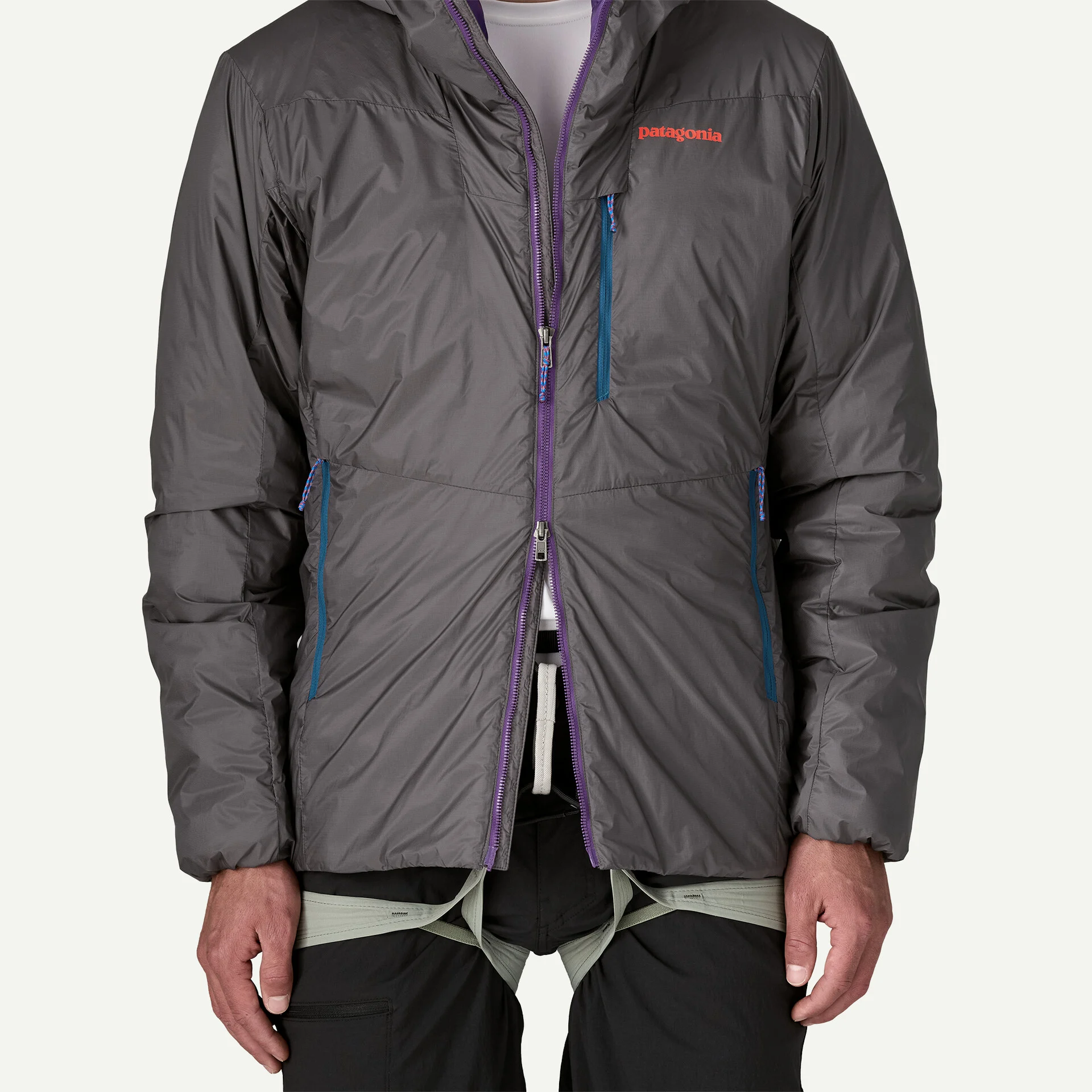 Двупосочен, централен преден Vislon® цип, подкрепен с вътрешно капаче за вятър, позволява достъп до осигурителната примка