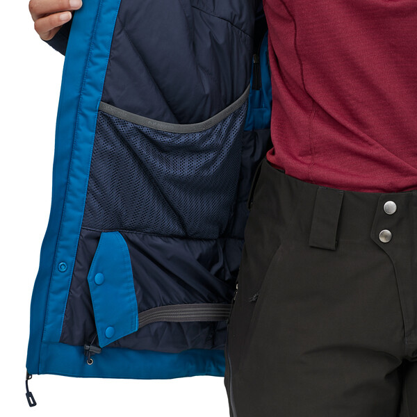 Джобове с цип: два предни за затопляне на ръцете; един на гърдите с отвор за кабел; един вътрешен джоб за аксесоари, един вътрешен drop-in джоб за ски маска или ръкавици.